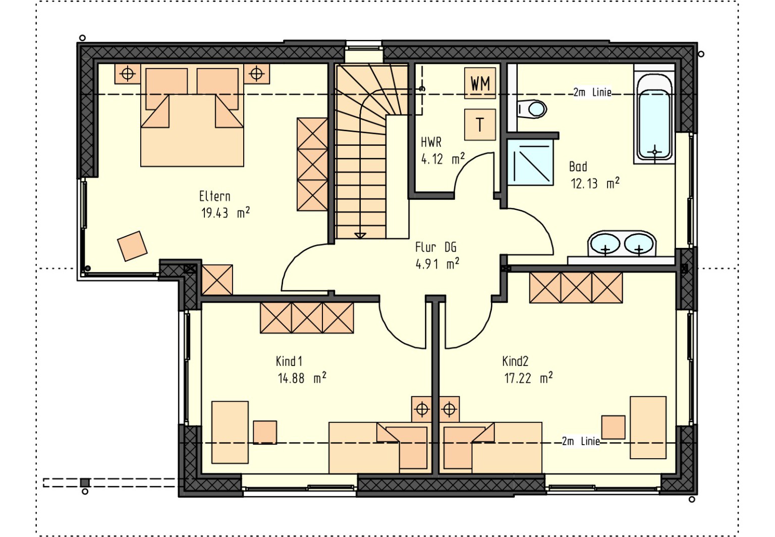 Ausgesttattet mit genügend Platz für eine 4-köpfige „Familienplanung“ bleibt auch noch Raum für ein gemütliches Gästezimmer.